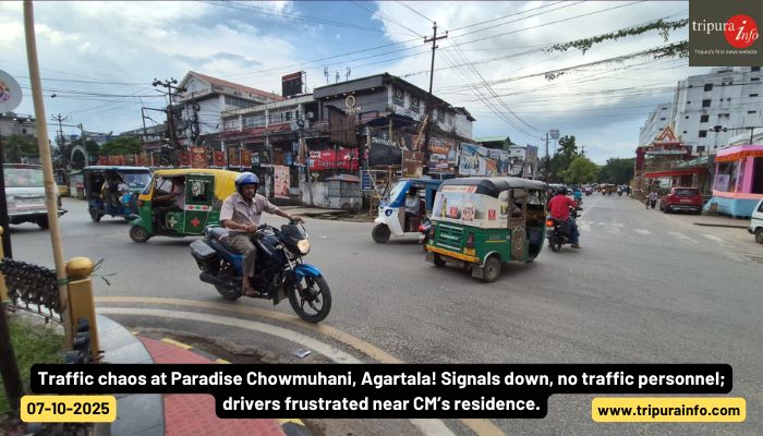 Traffic chaos at Paradise Chowmuhani, Agartala! Signals down, no traffic personnel; drivers frustrat...
