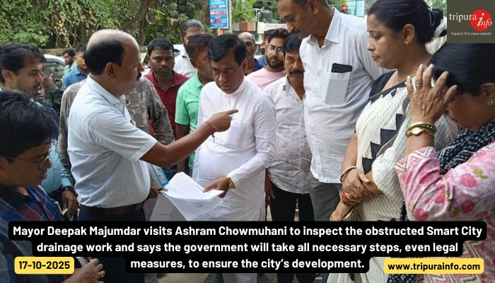 Mayor Deepak Majumdar visits Ashram Chowmuhani to inspect the obstructed Smart City drainage work an...