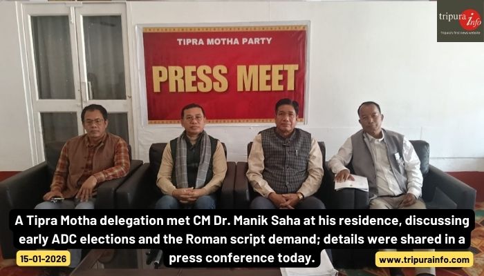 A Tipra Motha delegation met CM Dr. Manik Saha at his residence, discussing early ADC elections and ...
