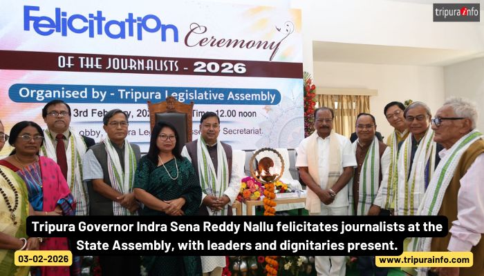 Tripura Governor Indra Sena Reddy Nallu felicitates journalists at the State Assembly, with leaders ...