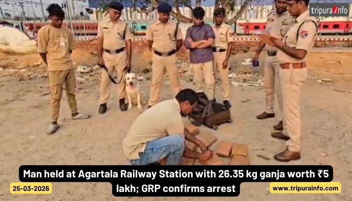 Man held at Agartala Railway Station with 26.35 kg ganja worth ₹5 lakh; GRP confirms arrest....