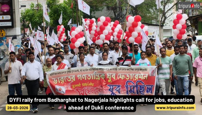 DYFI rally from Badharghat to Nagerjala highlights call for jobs, education ahead of Dukli conferenc...