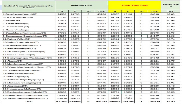 83.52% Turnout in TTAADC Polls 2026: Purba Muhuripur Records Highest (89.91%), Damchherra–Jampui Low...