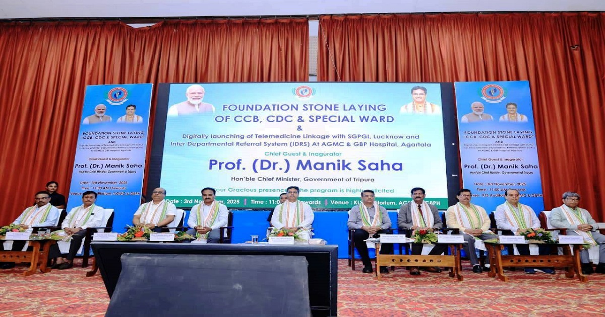 আগরতলা, নভেম্বর ৪, : ত্রিপুরার স্বাস্থ্য ব্যবস্থা এখন নতুন উচ্চতায় পৌঁছে গেছে। নাগরিকগণ যেন সর্বোচ্চ মানের চিকিৎসা পরিষেবা পান সেই লক্ষ্যেই বর্তমান রাজ্য সরকার তথা স্বাস্থ্য দপ্তর নিরলস প্রচেষ্টা চালিয়ে যাচ্ছে। রাজ্যের মানুষ যাতে আধুনিক, দ্রুত ও সুলভ চিকিৎসা পরিষেবা পেতে পারেন সেই লক্ষ্য পূরণে রাজ্য সরকার আধুনিক পরিকাঠামো গড়ে তুলছে। ৩ নভেম্বর জিবিপি হাসপাতালের নতুন ক্রিটিক্যাল কেয়ার ব্লক (সিসিবি), সংক্রামক রোগ কেন্দ্র (সিডিসি) এবং ২০ শয্যা বিশিষ্ট স্পেশাল ওয়ার্ডের ভিত্তিপ্রস্তর স্থাপন করে কার্ল ল্যান্ডস্টেনার অডিটোরিয়ামে আয়োজিত অনুষ্ঠানে প্রধান অতিথির ভাষণে মুখ্যমন্ত্রী প্রফেসর (ডা.) মানিক সাহা একথা বলেন। অনুষ্ঠানমঞ্চে এছাড়াও মুখ্যমন্ত্রী এজিএমসি এবং জিবিপি হাসপাতালের সাথে দিল্লীর এইমস এবং লক্ষ্মৌ-এর এজিপিজিআই হসপিটালের মধ্যে ডিজিট্যাল টেলিমেডিসিন পরিষেবার সূচনা করেন। পাশাপাশি জিবিপি হাসপাতালে রোগী ব্যবস্থাপনা উন্নয়নের লক্ষ্যে ইন্টারডিপার্টমেন্টাল রেফারেল সিস্টেমেরও সূচনা করেন।