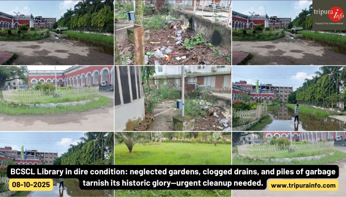 BCSCL Library in dire condition: neglected gardens, clogged drains, and piles of garbage tarnish its...
