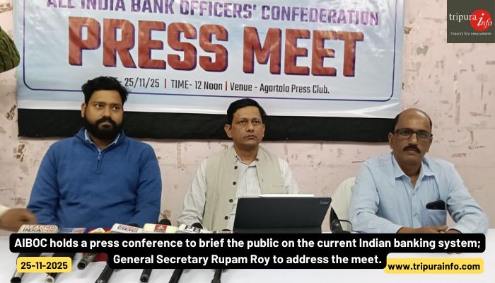 AIBOC holds a press conference to brief the public on the current Indian banking system; General Sec...