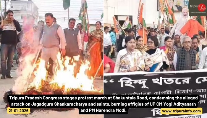 Tripura Pradesh Congress stages protest march at Shakuntala Road, condemning the alleged attack on J...