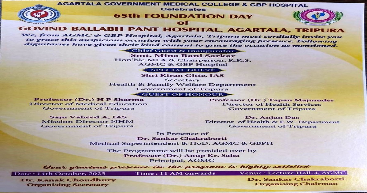 Speaking ahead of the celebration, Dr. Kanak Chowdhury, Deputy Superintendent of GBP Hospital and Organizing Secretary of the event, said, “This foundation day is not just a celebration of our institution’s history but a tribute to every doctor, nurse, and staff member who has served with commitment over the decades. AGMC and GBP Hospital continues to be the lifeline of healthcare in Tripura, and we are proud to uphold its legacy.”