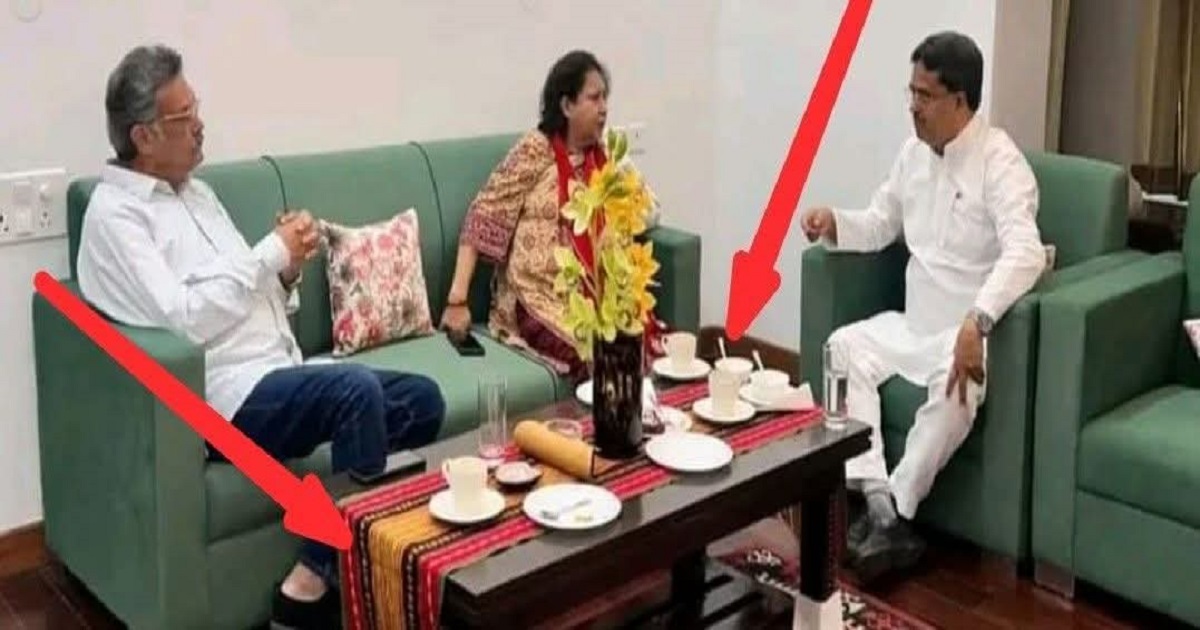 A heated debate has surfaced on social media after photos circulated showing East Tripura MP Kriti Singh Debbarma hosting Chief Minister Dr. Manik Saha at her Delhi residence with a risa spread on the table, the same traditional cloth that recently sparked controversy.