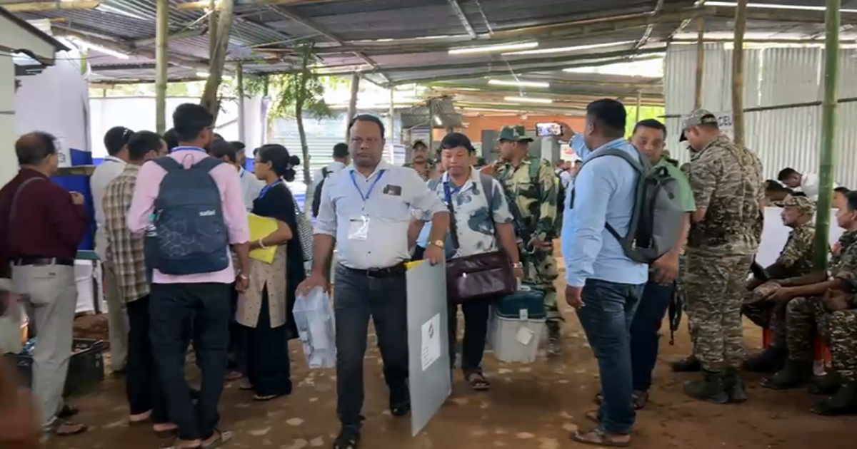 The employees and officers in charge of conducting the by-election to Dharma Nagar assembly constituency (No-56) tomorrow collected their electronic voting machines (EVMs) and other poll materials from the Dharma Nagar Girls H.S. (+2) school and left for their respective polling stations and booths. The vote casting in the by-election to the Dharma Nagar seat by-poll will commence at 7-00 in the morning tomorrow and end at 5-00 PM though the voters gathered within the polling stations within the scheduled end of polling will be allowed to cast their votes.